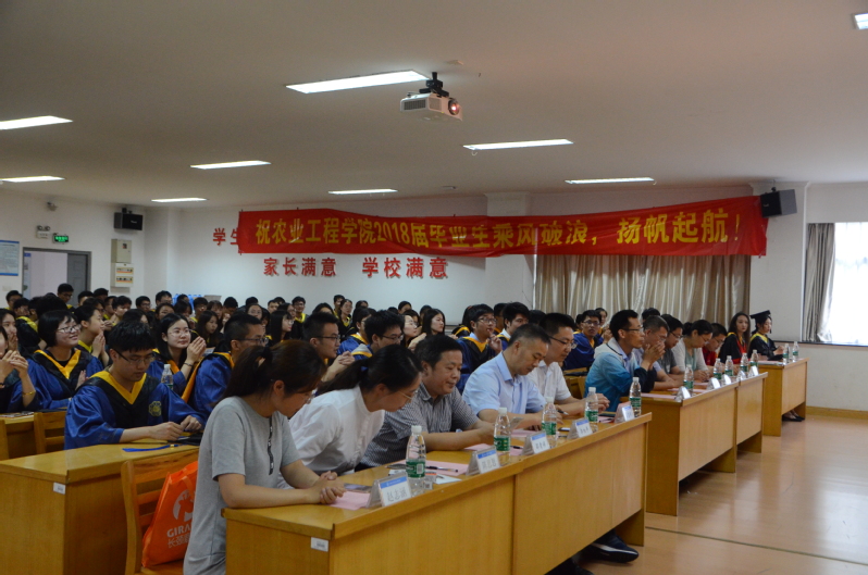 6月19日下午,88858cc永利官网农业工程学院在水电馆401成功举办2018届研究生暨本科生毕业典礼。农业工程学院院长李同春老师,学院党委书记陈毓陵老师,副院长朱成立老师,院长助理徐俊增老师,农业工程系主任翟亚明老师,学院团委书记薛璟老师,各研究所所长,班导师,研究生导师代表以及100余名毕业生参加了典礼。同时到会的还有水利水电学院党委副书记戴玉珍老师,研究生教学秘书周昶老师,研究生辅导员赵志涵老师以及14级本科生辅导员陈思思老师。