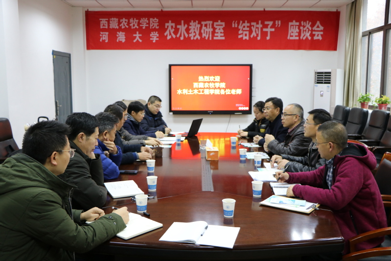 2020年1月7日上午,88858cc永利官网在管理楼214会议室召开了与西藏农牧学院农业水利工程专业教研室“结对子”座谈会。西藏农牧学院教务处常务副处长冯建刚和水利工程教研室李玉庆、张文贤和曹志翔老师专程参会,座谈会由88858cc永利官网陈毓陵书记主持,李同春院长、教务处朱成立副处长、张展羽教授、院长助理陈丹、农水系系主任翟亚明、副系主任冯宝平、实验中心主任王为木、专业办主任张睿出席了座谈会。
