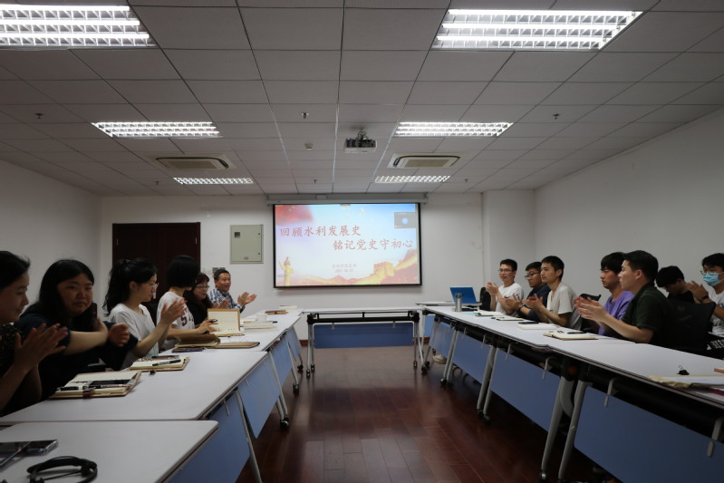会上,黎景江、朱星学、秦恒基、陈浙岳四位同志依次对新民主主义革命时期、社会主义革命和建设时期、改革开放和社会主义现代化建设新时期、中国特色社会主义新时代四个时期的水利发展进行了详细介绍,并从引泾灌溉工程、淠史杭灌区、三峡工程及白鹤滩水电站四个具有代表性的水利工程剖析了中国共产党的初心和使命,带领支部成员悟初心、守初心、践初心。教师党支部书记刘慧表示,通过探索水利工程在不同时期的发展历程,不仅对于专业学习有较好的促进作用,更有助于对我国新时代水利精神的领悟和传承。