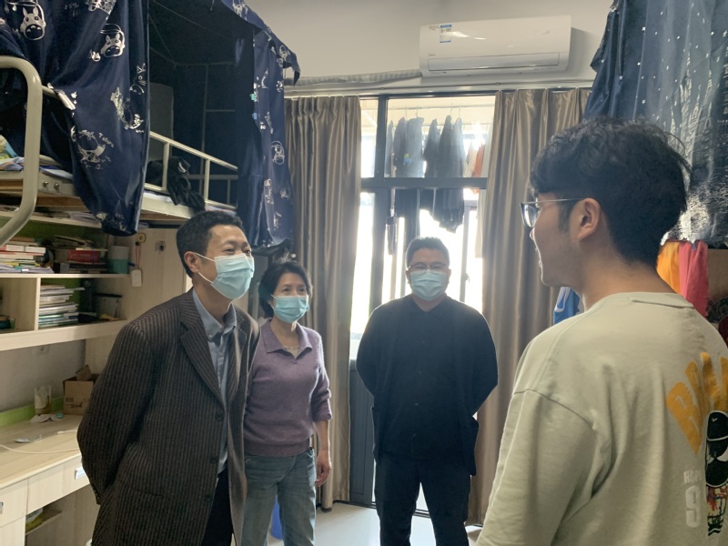 4月21日,院党委书记朱成立、院长陈菁在辅导员陪同下到学生宿舍进行走访,与学生们亲切交谈,了解大家线上上课、升学就业、疫情防控、学习生活等情况,同时鼓励大家积极克服疫情带来的暂时性困难,在做好个人防护的同时,强化人生规划,树立责任意识,夯实专业基础,练就过硬本领,努力实现青春梦想。