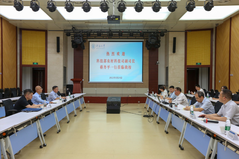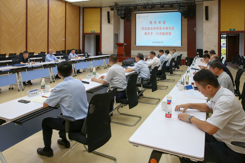 8月24日,科技部农村科技司副司长蒋丹平、农村科技司农业处处长霍季春、江苏省科技厅农村科技处调研员张辉来88858cc永利官网考察指导,校长徐辉、副校长郑金海、校办主任李枫、科技处处长王锦国、院党委书记朱成立、院长陈菁及学院各研究所负责人会见来宾,并举行了座谈会。